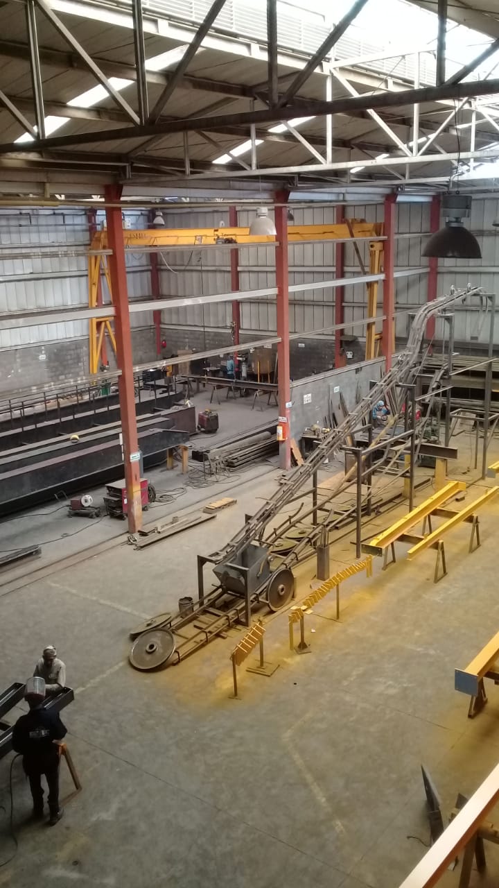 * Fabricación de vigas carrileras, vigas puente tipo cajón capacidad 15 toneladas de 18 metros, luz 18.000, carros testeros y ménsulas.